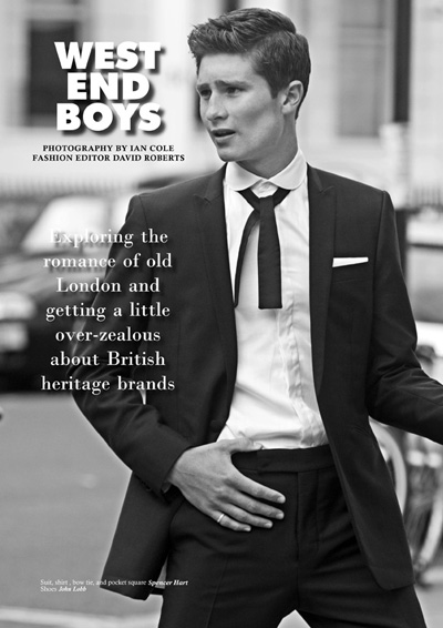 Client magazine's West End Boys story by fashion photographer Ian Cole featuring Select London's model Matt Spice. West End Boys is a tribute to London's prestigious Savile Row Master Tailors – featuring British heritage brands like Ede & Ravenscroft, Dr Martens, Richard James, Mark Powell and collection pieces from Spencer Hart, Aquascutum, Vivienne Westwood and Tim Soar to name a few.
