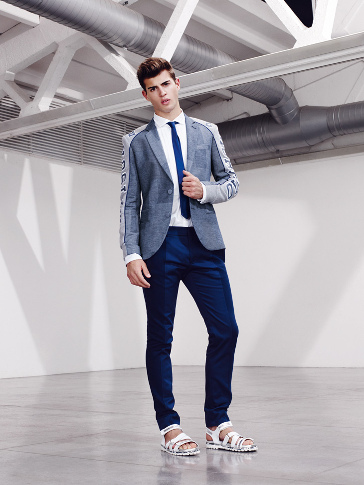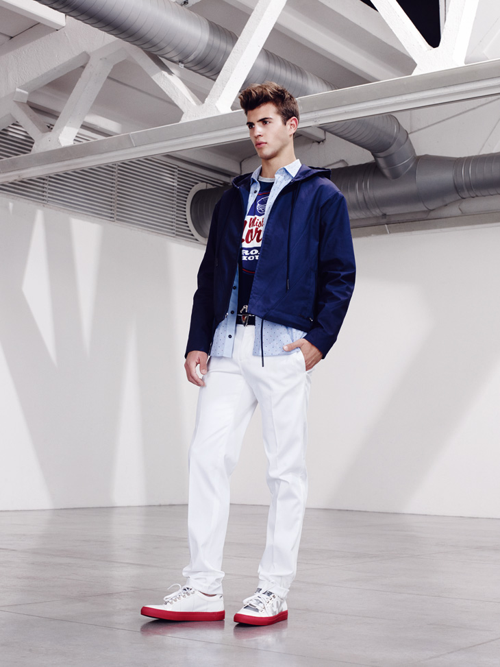Frankie Morello have another surprise for us today, after the earlier featured women's designs we have the just revealed men's spring summer 14 pre-collection. The designs easily show the path of the main SS14 story shown during the recent Milan Fashion Week. Sportswear is marvelously mixed in with classic lines, creating youthful and dynamic looks. Prints are fun and colourful, just like the label's DNA. The colour palette displays an intense study of blue, used in a monochrome manner often paired down with gray or crisp white.
