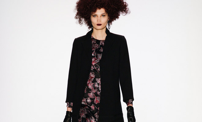 The major color scheme of this collection was dominated by sundry shades of black and green. Albeit also safran, creme- white and rich gold were presented. Simply sophisticated! In addition to those mysterious tones, red loomed large. Scarlet, magenta and russet gave the looks their very special flair. The striking magenta enriched coats, but also blouses and created looks that stayed in mind. As his red highlights were so well dosed, those outfits did not scream for attention but just impressed by their very special detail- awareness.