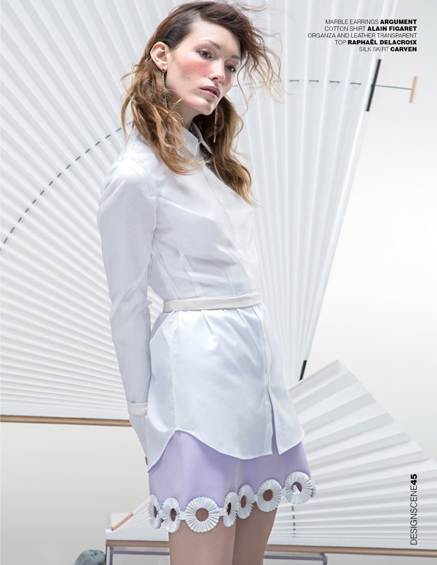 Paris-based fashion photography duo Jinling&Sun capture Ripples story for the latest edition of our Design SCENE Magazine featuring the gorgeous Fanny Fournier at Marilyn Models. In charge of styling was Coline Peyrot, with makeup by Camille Sigure, and hair styling by Cyril Laforet. Set design is courtesy of Biwei Pan.