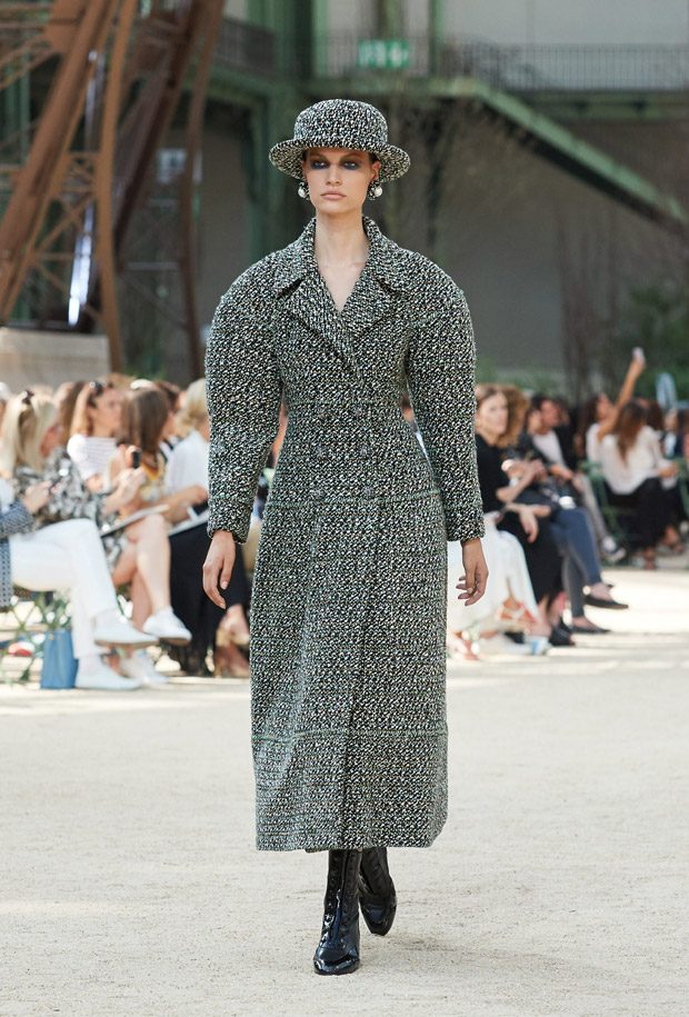 Karl Lagerfeld showcased Chanel‘s Fall Winter 2017.18 In The Shadow Of The Eiffel Tower Haute Couture collection, yesterday at Grand Palais in Paris. For the set Chanel built a scale model of The Eiffel Tower under the glass roof of the Grand Palais.