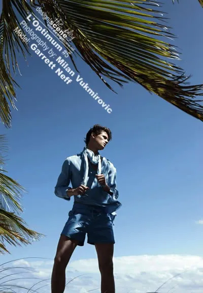 Garrett Neff’s editorial “Nouvel Horizon” in L’Optimum #5, July-August 2008, marks a significant moment in the model’s career and in men’s fashion publishing. Shot and styled by Milan Vukmirovic, the feature showcases Neff at a pivotal stage—fresh from headline campaigns for brands like Benetton, Karl Lagerfeld, and Calvin Klein, including the iconic Calvin Klein Underwear campaign by Bruce Weber that solidified his status as a leading face in the industry.