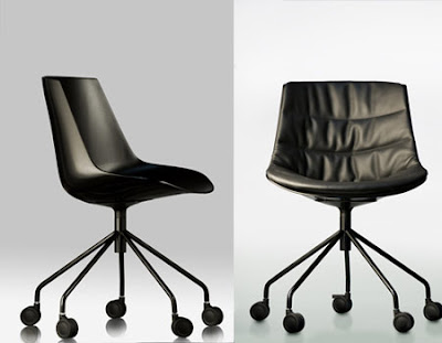 A family of seatings of great impact and comfort. Designed for the home, the office and the community areas. The shell, made from polycarbonate, is mass-pigmented in white, black, grey, and has a standard double finish: gloss outside, and goffered inside. Base options: 4-legged, sled, sled with arm, 5-legged, 5-point-star, with central leg, 4-legged in oak. Continue for more after the jump: