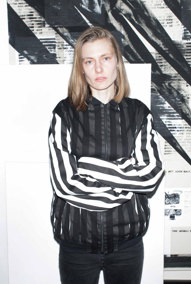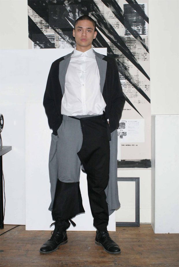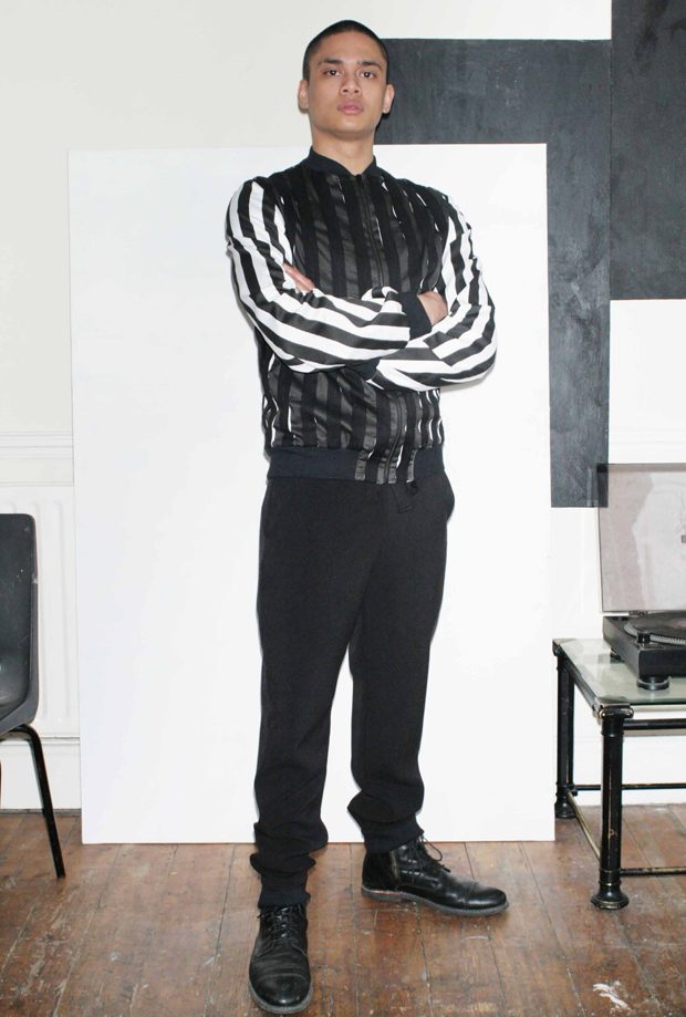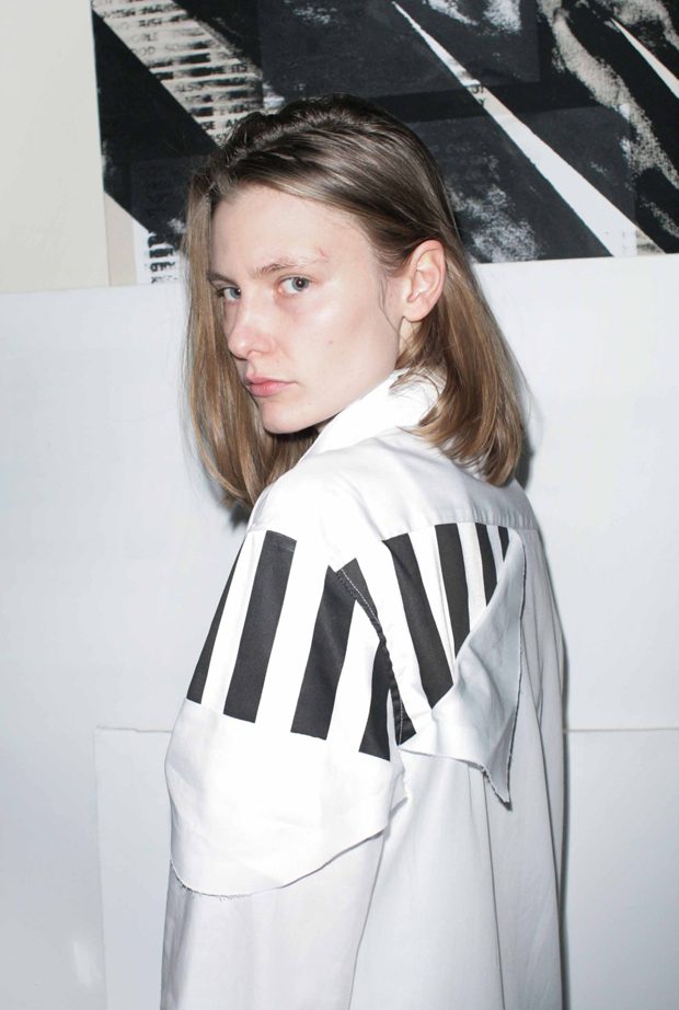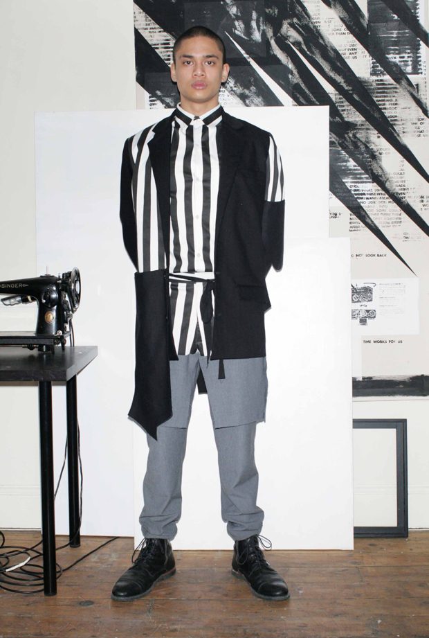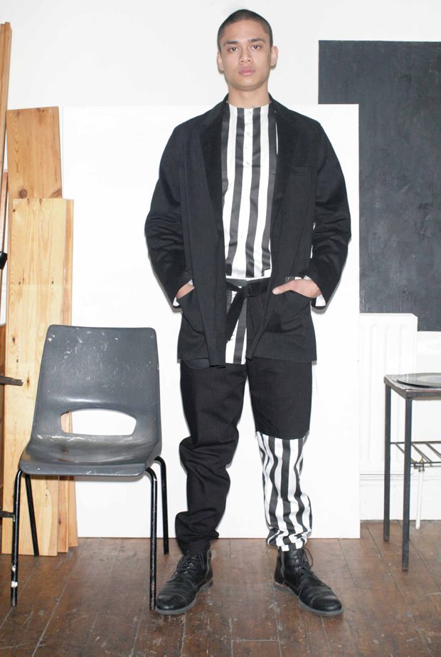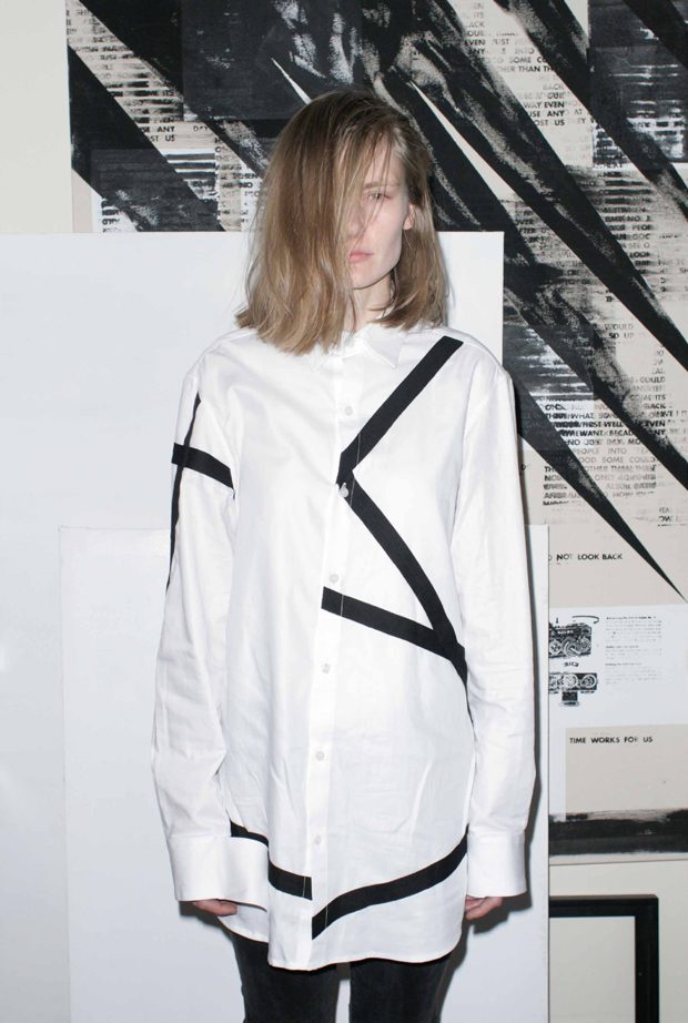 I was always very intrigued and dazzled by traditional tailoring. This is the starting point of every new collection. I deconstruct, rebuild, and through this cutting process, I create new elements. Hand embellished pinstripes and fringing threads are also additions to my pieces. Think of Kurt Cobain smashing a guitar on stage, the thousands of shattered pieces regroup to create a new, more powerful sound. – Ester Kubisz