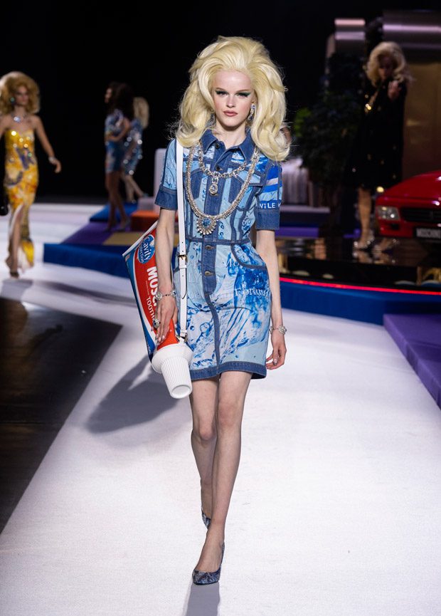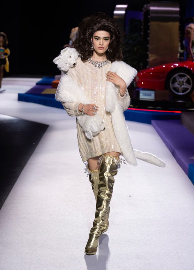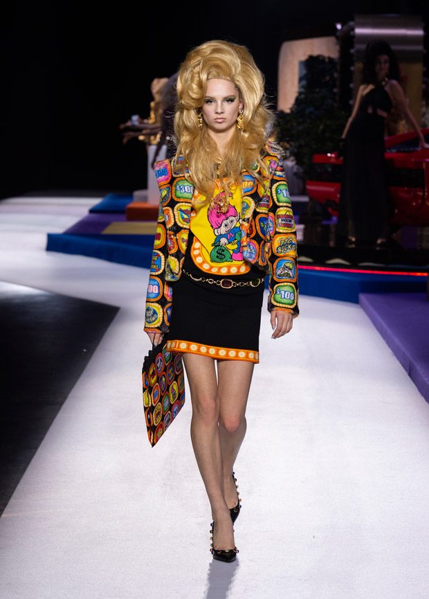 Designer Jeremy Scott presented Moschino‘s Fall Winter 2019.20 Game Show Collection, that explores technicolor escape from reality, on February 21st, during the ongoing Milan Fashion Week.