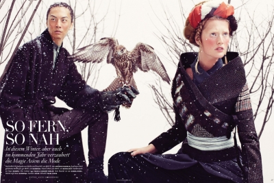 Supermodel Toni Garrn joined by David Chiang for German Vogue session by Alexi Lubomirski styled by magazine's editor-in-chief Christiane Arp.