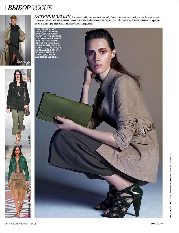 Fashion photographer Bjarne Jonasson at Atelier Management teams up with American model Georgia Hilmer at Next Models for Trend story coming from the pages of Vogue Russia‘s February 2015 edition. Styling is courtesy of Katerina Zolototrubova with hair by Mark Hampton, makeup by Moani Lee and manicure by Eri Handa.