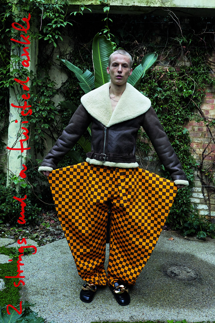 The collections reflect JW Anderson‘s sense of humor with dramatic shapes, vegetables on sweaters, space age coats, squashes on jeans, and oversized shirts and trousers. The light spirited collections are direct, honest, real and pure, and they are meant to make you think.