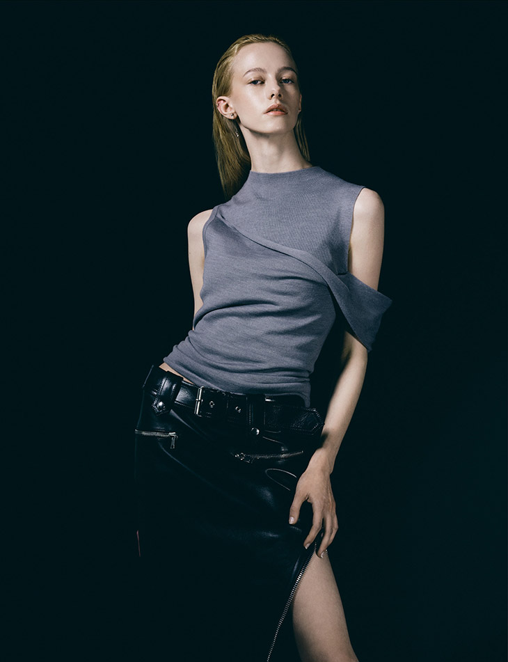 The striking Nonie Goldman at Klass Model MGMT stars in the latest DSCENE STYLE STORIES exclusive feature titled Darkest Hour lensed by fashion photographer Eluvier Acosta. In charge of styling was Emilie Gagnon, with hair styling and makeup from beauty artist Emilia Kuczma-Porebska. Retouching by Yuna Bone, color by Anton Kurkostryha.