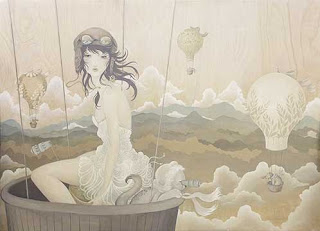 She has dedicated many years of her life mixing pigments and mediums to achieved a unique color palette of subtly muted tones. The artist works intuitevely from the begining to end of each piece, with the intent that each painting’s theme or message can be interpreted subjectively. Within these delicate works, you may often find whimsical landscapes populated with exotic plants, animal and females… Amongst the expressions of each charachter are notions of peaceful reflection and a sense of companionship. You can find more of Amys artwork at her official website.