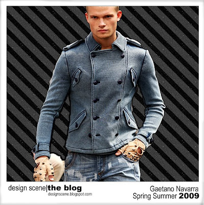 The name of the FW 08/09 collection by Gaeatno Navarra was “Gothic Tales and Medieval Future” lot of elements specially the gothic ones re-appeared again in the Spring Summer 2009 line, with a top choice of models, Gaetano seems to be giving labels such as DSquared something to worry about. Lot of almost worn out materials, shades of blue and gray, again lot of 18th century and edwardian suggestions, with all combined Gaetano people made most of the pieces streetwear ready. My personal fave is the blue top worn by Jesper Lund, the one I’ve put aside on the photo above. Click on the images above to enlarge.