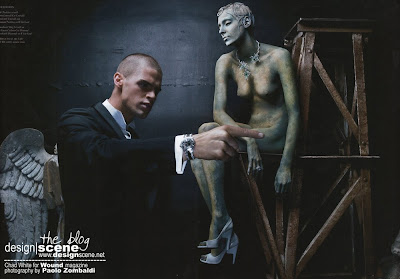 Some new work from Chad White, this time its for Wound magazine, again Chad is not afraid to bare it all, and who better for an edit named Statuesque but Mr White. The cover of this issue features supermodel Jon Kortatjarena. Source.