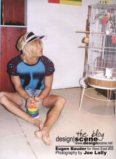 Supermodel Eugen Bauder in West East magazines Liquorism editorial dresses up and goes blond in this fun shoot by photographer Joe Lally (I'm pretty sure that's just a blond wig). Months ago Design Scene featured an untitled Eugen Bauder shoot by Lally.