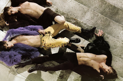 On steps of his Paris home Karl Lagerfeld photographed three of Spain's most famous faces in a shoot styled by Gareth Pugh. I'd say they do "twighlight" better than actual actors in the movie, but maybe they are just goth glam? Just in case You didn't know Gareth Pugh is the most influental british avant-garde designer of the monent.