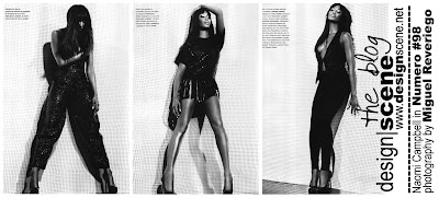 Some of the previews from a 10 page editorial in the latest issue of french glossy fashion magazine Numero with supermodel Naomi Campbell, shot by photographer Miguel Reveriego. Campbell is also on the cover of this 98th Numero issue, posted few days ago HERE. For this shoot Naomi wears lot of Yves Saint Laurent, Chanel, Karl Lagerfeld, Emporio Armani, Gianfraco Ferre and more.
