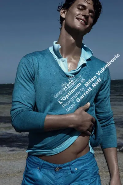 Garrett Neff’s editorial “Nouvel Horizon” in L’Optimum #5, July-August 2008, marks a significant moment in the model’s career and in men’s fashion publishing. Shot and styled by Milan Vukmirovic, the feature showcases Neff at a pivotal stage—fresh from headline campaigns for brands like Benetton, Karl Lagerfeld, and Calvin Klein, including the iconic Calvin Klein Underwear campaign by Bruce Weber that solidified his status as a leading face in the industry.