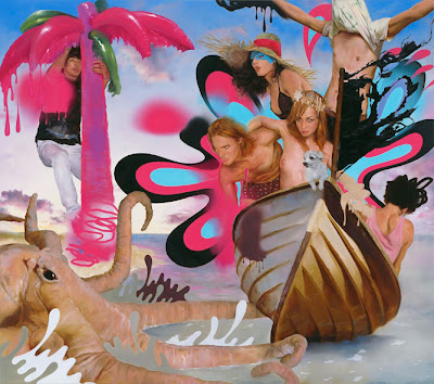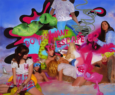 Painting by Asgar Gabriel, titles of the pieces in order are: “scaring the fish”, “do you want to escape”,”neue Ordnung” and “Loch in der Welt”. More on artists web portfolio.