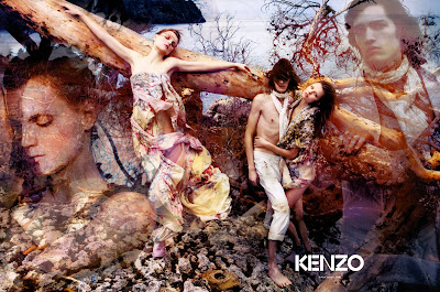 For the spring summer Kenzo campaign, fashion photography by Mario Sorrenti was turned into Kenzo artwork, per usual the house always succeeds in bringing up the artsy side. Sorrenti was born in Naples, Italy, he moved to New York at the age of ten, where he's still working and living. Besides working on notable photography like Calvin Klein ads featuring Kate Moss, Lancome, Paco Rabanne and Benetton adverts, Sorrenti's photography was also a subject of exhibitions at London's Victoria and Albert Museum, New Yorks Museum of Modern Art and a number of other galleries.
