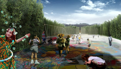 The palace has different halls in various sizes and ground materials to stimulate an active playground. Some of the halls have educational purposes, where classes can be held outside if the weather permits. The future of the school yard is still undecided. Courtesy of Visiondivision.