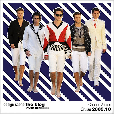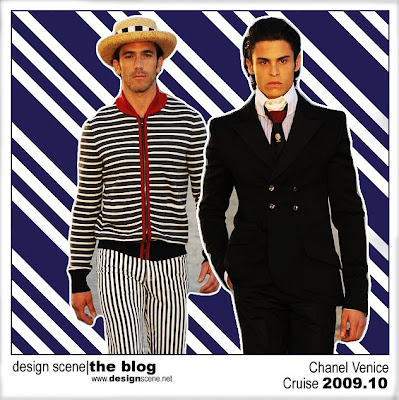 Venice was Coco Chanels favorite destination for almost ten years begining 1919. and the place where she met love of her life Diaghilev. Cocos past, the urge to make every Chanel show a unique experience and motion picture "Death in Venice" culminated in Karls "Coco on the lido" inspiration, brining 350 guests to sun beds next to the boardwalk along the Venice Lido enjoing the sunset and the Chanel show. Above are the menswear outfits, of course modeled by the Lagerfeld team and their new #1.