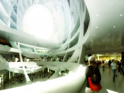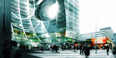 OMA: Two contextual observations triggered the design process. The position of the site in the urban context of the city Rotterdam can truly be regarded as the center of Rotterdam. This is the moment where Rotterdam’s most important streets: Coolsingel, Lijnbaan, Binnenweg and Beurstraverse merge together. The second observation is Rotterdam’s current construction development that almost entirely consists of tower projects. The high-rise creates an impressive skyline, but due to mono-functionality and its lack of engagement with the surrounding public domain it does not succeed to enhance the attractiveness and liveliness of the centre.