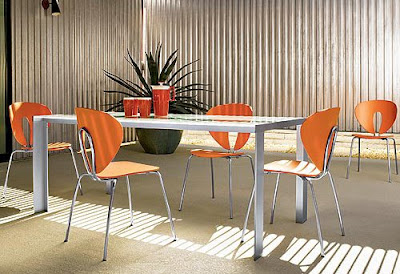 Globus is a light stackable chair of refreshingly original design. The curvature of seat and backrest combine to offer an exceptionally comfortable seating position. The expressive even voluptuous lines of the frame, seat and back are beautifully crafted and smoothly integrated to create a piece that looks perfectly finished from every angle. The picture shows the orange polypropylene finish with stainless steel frame.