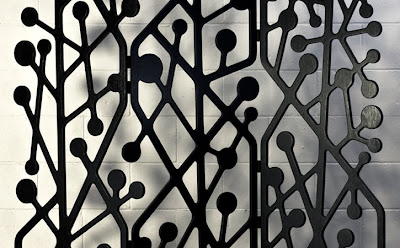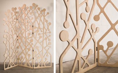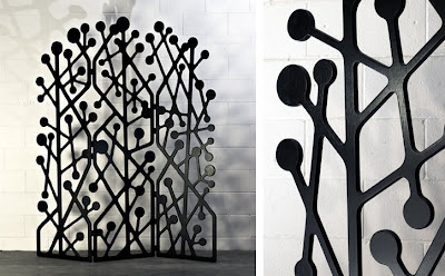 Inspired by plant forms and the molecular structures of DNA, the pattern is very open which allows the screen to divide spaces while not impeding either light or air flow.