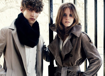 New ad campaign shot in new Burberry HQ near Westminister Abbey, House of Parliament and Big Ben, stars models Tom Guinness, Charlie France, Nick Wilson and young fashion muse actress Emma Watson, enhancing the London neigborhood feel of the campaign photographed by legendary Mario Testino.