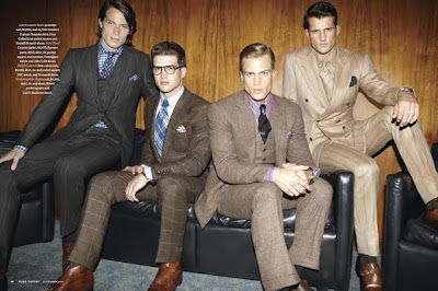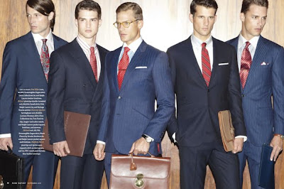 In case you are traveling first class and looking for some more luxury you're sure to find it in Robb Report's next to you, the biggest source of luxury. Fashion photographer David Roemer of Atelier Management photographed this wonderful suit themed fashion spread for the latest Robb Report, more images under the cut: