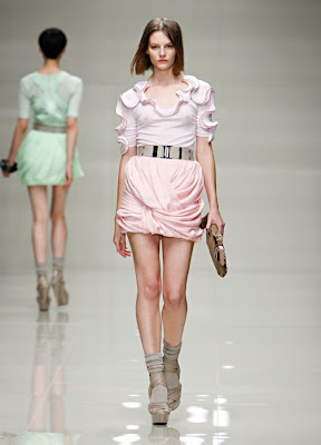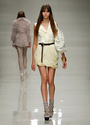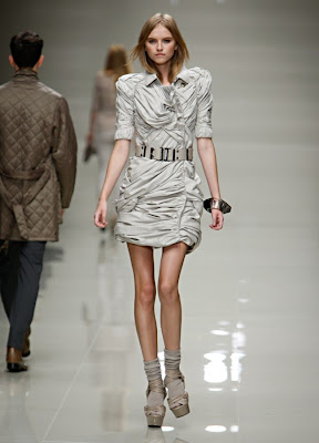 Closing this years Spring Summer London Fashion Week was Burberry Prorsum's Womenswear Collection titled "Twisted Classics" by Burberry creative director Christopher Bailey. The show took place in a venue specially built by Burberry, from the amazing venue to a detailed collection all of the anticipations were met. Bailey literary gave a new twist to the statement shoulder trend, scrunched skirts, genially constructed materials, new domination of the trench, made fashion history happen before our eyes. For sure the collection will dominate editorial pages for seasons to come.