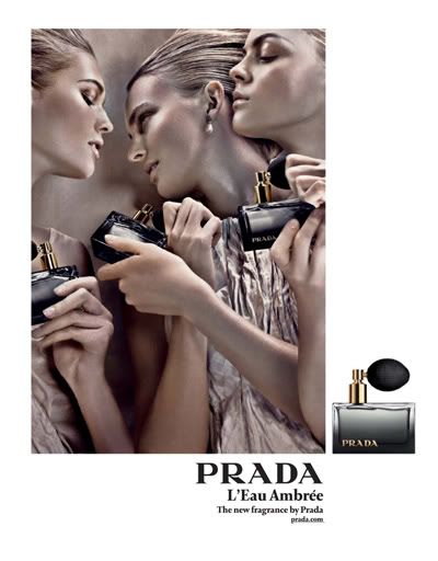 Prada is adding a new fragrance to it's brand this autumn, a new women scent L’Eau Ambrée. Promo images were photographed together with the Spring Summer 2009 advert campaign by famed photographer Steven Meisel, with an addition of a TV spot, both are set to debut in Europe and US by October. Check out the single page advert under the cut:
