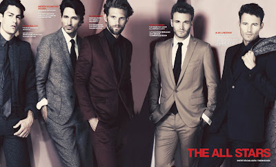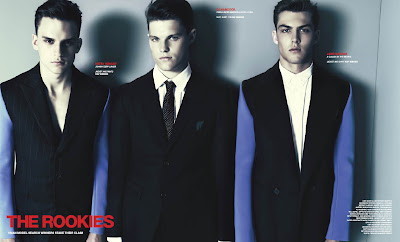 In whats quite a menswear day on Design Scene we got the latest sent to us from Vman magazines PR, two fashion spreads The Rookies and The All Stars. 2009 winners Petey Wright, CJ Hancock and Jake Madden model the latest from Raf Simons’ fall 2009 season. While the time will tell if they can take the place of The All Stars as VMan would say "Institutions Unto Themselves", which are The Male Supermodel Prototype – Tyson Ballou, The Spanish Leading Man – Andres Velencoso Segura, Sensitive, Poetic, and Timeless Male Beauty – RJ Rogenski, The Soccer Star Turned All-American Classic – Brad Kroenig and Classic Euro Charm That Stands the Test of Time – Alex Lundqvist. New VMAN is hitting newsstands September 15th, continue reading to find out what are the supermodel rookies and all stars wearing: