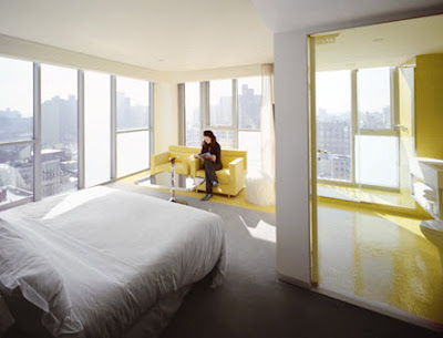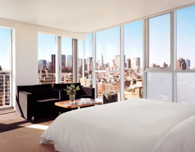 Guestrooms at the Hotel on Rivington offer sweeping and spectacular views of Manhattan, the rivers and beyond. Each room boasts floor-to-ceiling glass walls, half of which also include a balcony. The interiors of the room were furnished by internationally acclaimed, Paris-based designer India Mahdavi. She thoughtfully designed rooms that are luxurious, elegant, modern and sensuous – velvet sofas and chairs, Frette linens and rich details. The larger than average rooms also offer Tempur-Pedic mattresses from Sweden, flat-screen TVs WiFi, and Italian Bisazza tile floors in the bathrooms. Many rooms also feature sexy showers with a view, and Japanese soaking tubs. For more info log on to hotelonrivington.com, continue for more images from the hotel: