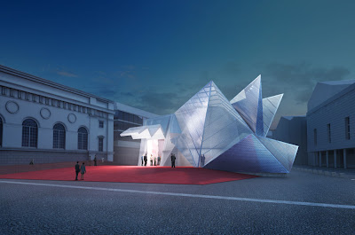 The “Pavilion 21 MINI Opera Space” is a temporary mobile performance space for 300 visitors to be located on the Masterstallplatz in the City of Munich. It is intended to be used for a wide range of events at the annual Opera Festival 2010 and then to travel to other locations. More info and images after the jump: