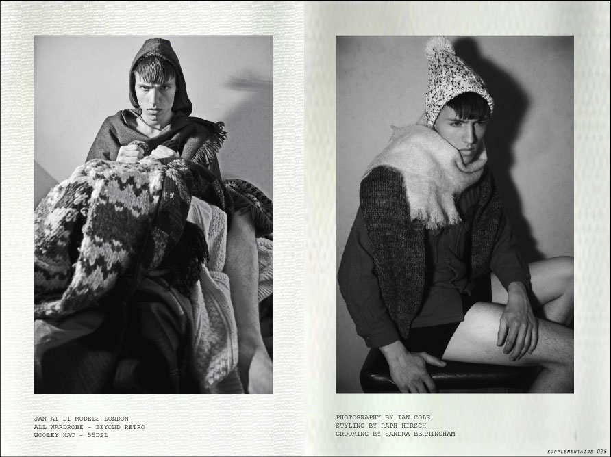Photographer Ian Cole shared exclusively with Design Scene his recent shoot with Sam and Jan, two up and coming models from British D1 agency. Sam was part of Topmans advertising campaign, appeared in Dazed & Confused and various other fashion magazines. Ian gave a classic feel to this shoot with stylist Raph Hirsch, who chose Beyond Retro clothing for the portrait series, log on to beyondretro.com, for a very unique web page and more of their clothes. Complete The Portrait Boys story by Ian Cole is after the jump: