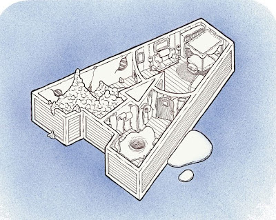 From the head and hand of master draftsman Scott Teplin comes a series of 26 dream-houses fashioned after our alphabet. Explore in each a bizarre, miniaturized constellation of bed rooms, drawing rooms, fantasy swimming pools, mysterious laboratories, personal ice cream parlors, gambling halls, nuclear reactors, and oozing phenomena of unknown consequence. Each crisp drawing pops from its page in a field of floating color. More info and complete Alphabet City over at x-ingbooks.com