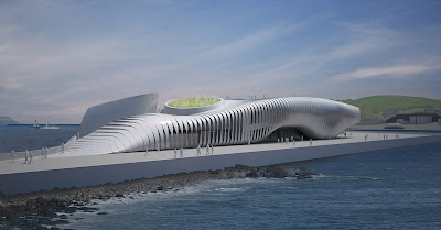 Austrian architects soma have recently won the first prize in the international competition for the Thematic Pavilion for the 2012 Expo in Yeosu, South Korea. The Thematic Pavilion will be one of the major facilities of the Yeosu Expo. Its exhibitions will give the visitors overview and introduction to the Expo’s theme, “The Living Ocean and Coast”. The aim of soma’s design titled “One Ocean” is to create an iconic landmark that embodies the theme of the Expo in multiple ways and is integrated into its urban context and the surrounding nature. Continue for more after the jump:
