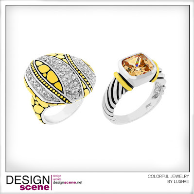 In world of monochrome jewelry two tone gets pretty colorful, besides mixing the traditional jewelry colors, LuShae also included colors such as blue, red and green in their design. Color enhanced spring season collections are already filling the pages of fashion glossiest leaving behind dark winter tones, perhaps its time to pick out color filled jewelry to match your playful spring outfits. Besides rings LuShae also offers earrings and pendants, continue for more of our recommended pieces after the jump: