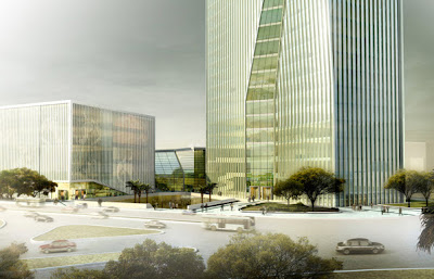 Solidity meets proximity: The Commercial Bank of Ethiopia (CBE) is to construct a 42-storey building for its headquarters in Addis Ababa. The building will be the tallest building ever in Ethiopia. One of the fundamental values in banking is trust. Solidity and integrity are as much a part of trust as transparency and proximity to the customer. This duality finds expression in the mixture of open and more reserved elements of the design. Continue for more images after the jump: