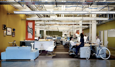 Formerly a lab facility for Agilent Technologies, a manufactures of high-tech measurement devices, the restored complex now becomes a lab of different sort – for measuring the intangibles of creativity and social interaction. Facebook wanted its new headquarters to reflect its values – freedom of expression, individuality and creativity. Continue for more images after the jump: