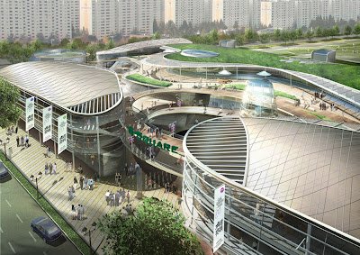 Samoo Architects and Engineers have won a design competition with their proposal for the redevelopment of the Garak Market in Seoul. Designed nearly a quarter of a century ago, the market was the first public wholesale market in Korea and with an area of 543,451 sq m, is the centre of trade for fruit, vegetables and meats in Seoul. However, it has been criticised for its ever-present traffic congestion and inefficient logistics system, both of which the winning proposal aims to tackle. Continue for more after the jump:
