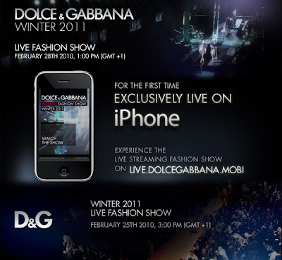 In 2010, Dolce&Gabbana; is raising the bar of direct contact with the most evolved consumers of mobile communications, offering the opportunity to watch the upcoming F/W 2010/11 season fashion show live on i-Phone.
