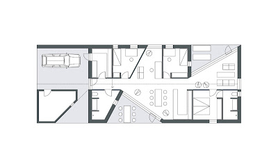 The main color is black but there are some cavities in the house painted in pure white. Inside, there is anything that usual family could possibly need and nothing more. Rooms aren’t very big but that is more than enough. The garage for one car is also part of the house. Unusual design and smart using of space are things which make the house interesting.