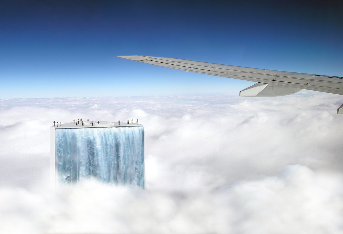 building” turns into an impressive wonder of nature: an urban waterfall, a symbol for the forces of nature. At the same time, it will be the representation of a collective awareness of the city towards its great surrounding landscape. Via