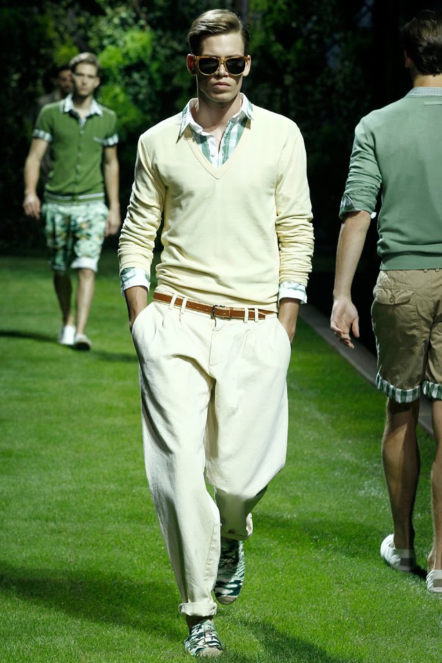 Preppy actually became cool on the D&G; Menswear Spring Summer 2011 runway in Milan, the designers were especially inspired by the feeling of a carefree picnic day. The very engaging prints varied from geometric and floral to even a print of the famed painting by Édouard Manet, “Le déjuner sur l’erbe”. View some of our favorite looks from D&G; Mens Spring Summer 2011 after the jump: