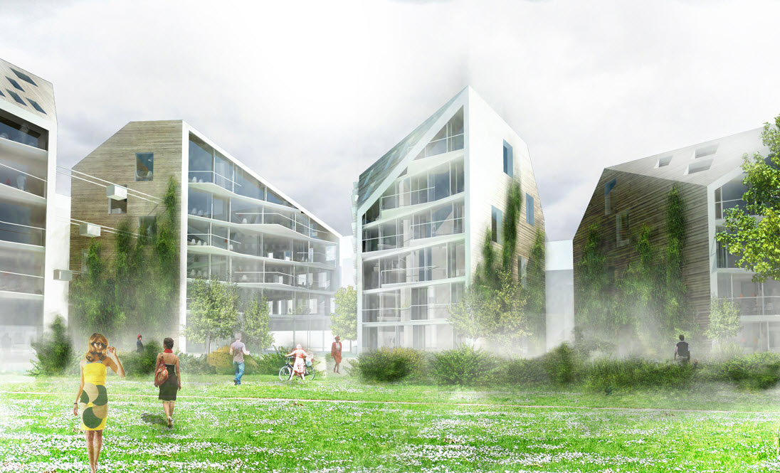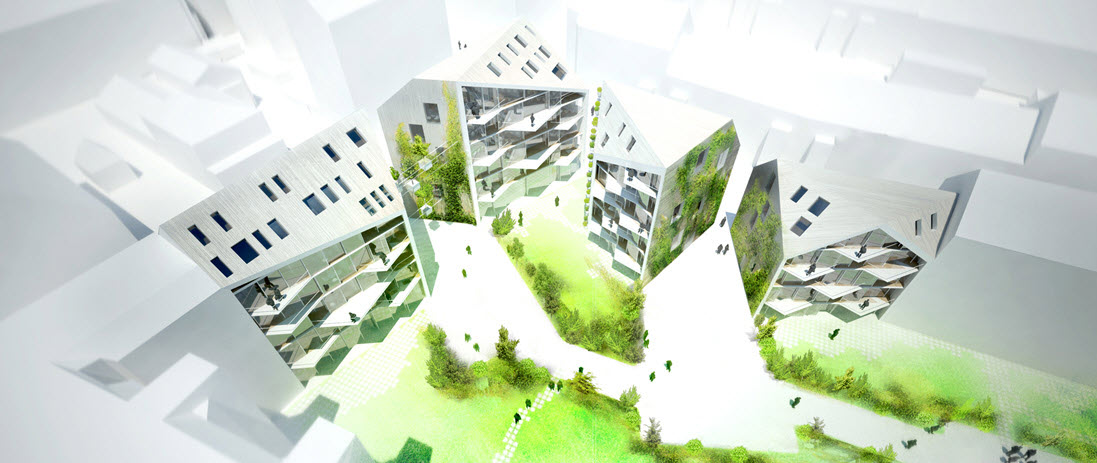 Historically Holmbladsgade is a distinct working-class and industrial area with a unique character. The area has been characterized by a cityscape clearly defined by dense residential streets. Meanwhile factory building and warehouses have interupded the street line, through their varying heights, facades and positioning, which often have been set back. The visual contact with the factory courtyards have a depth and character which provide unique identity for the area. In the meeting between industrial and residential buildings the gable-motive appears as an obvious characteristic in this part of Copenhagen. Continue for more of architects description and images after the jump: