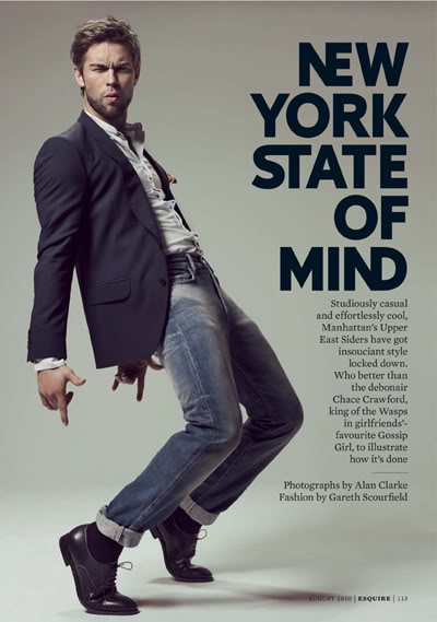 Gossip Girl star Chace Crawford turns model for New York State of Mind photo story from British Esquire magazine's August issue. Chace was photographed by Alan Clarke and styled in a role of an upper east sider by Gareth Scourfield, view more from his Esquire magazine shoot after the jump: