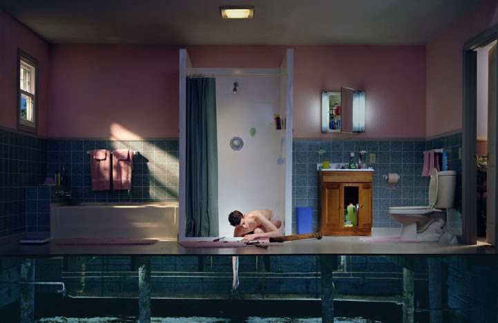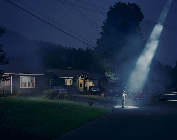 Gregory Crewdson works within a photographic tradition that combines the documentary style of William Eggleston and Walker Evans with the dream-like vision of filmmakers such as Stephen Spielberg and David Lynch. Crewdson’s method is equally filmic, building elaborate sets to take pictures of extraordinary detail and narrative portent. View more after the jump: