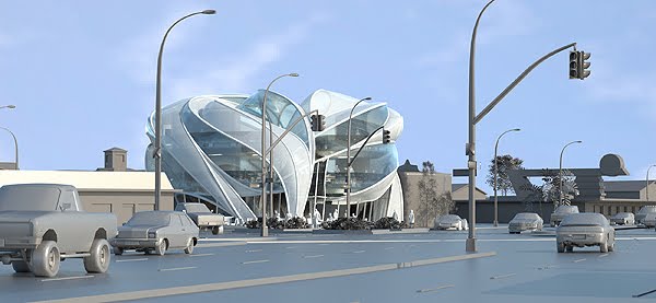 The proposal for this mixed use office building in Los Angeles, California creates a world-class landmark building aiming to enhance the cities vision as the premier quality city in the southeast area of Los Angeles County and to revitalize the industrial landscape of the site into a vital urban environment. Continue for more of architects description and info after the jump: