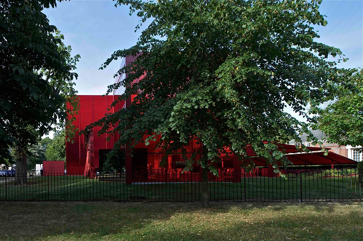 The Serpentine, under the direction of Julia Peyton-Jones has marked its 40th anniversary with their tenth summer pavillion. If you didn't know, renowned french architect Jean Nouvel has designed cantilevered structure in superb British pillar box red. View some new images of the project after the jump: